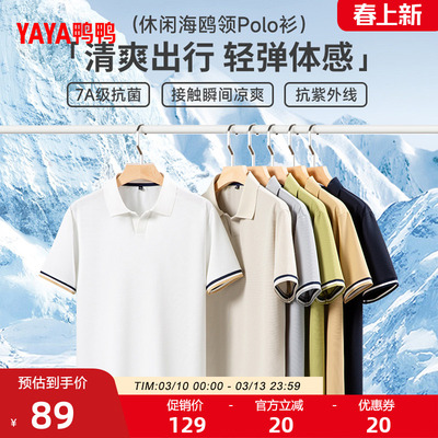 高弹锦氨纶面料!弹力更好!不易变形!包容性超好!鸭鸭2026春夏新款男Polo衫,海鸥领设计,简约时尚,宽松短款版型,透气舒适,百搭不挑人,适合日常穿搭!