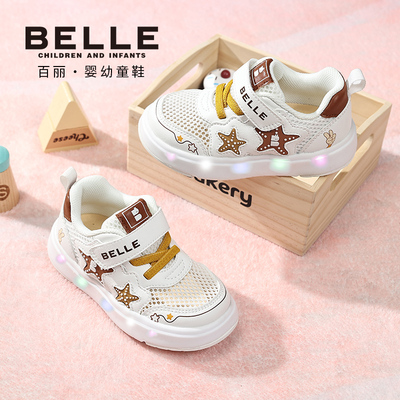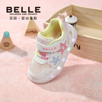 百丽童鞋26春新品男女童板鞋网面透气闪灯鞋