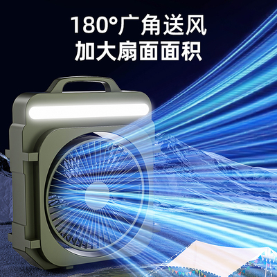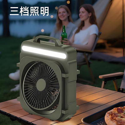 桌面风扇长续航户外充电露营带灯光电风扇,制冷小型便携大风强力降温器学生宿舍家用静音办公室手提小风扇新款