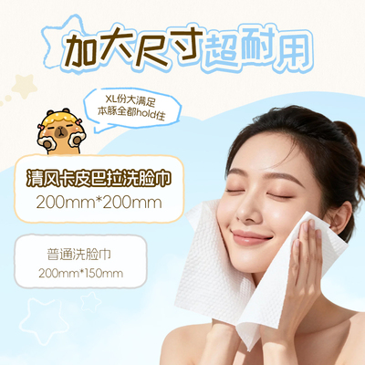 【详情页秒杀16.3元】清风悬挂式一次性洗脸巾200抽,一提克重600g,200*200cm大尺寸,加大加厚装的,医护级婴童级!柔韧不易抽丝,不易起毛,超长纤维耐拉扯!不含荧光剂增白剂,技术原料,舒适安全!1.69秒瞬间吸水!【赠运费险】