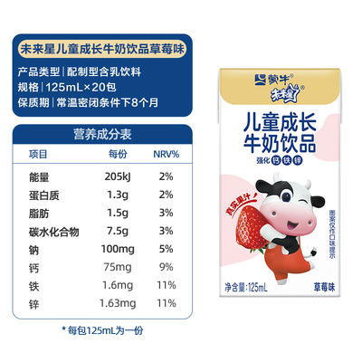 未来星儿童成长牛奶饮品草莓味苗条装125mLx20盒叠加淘金币+88vip到手20.9/20盒比水还便宜!!!