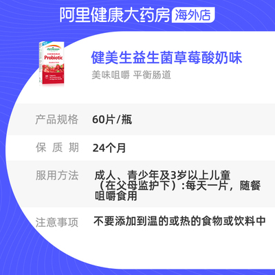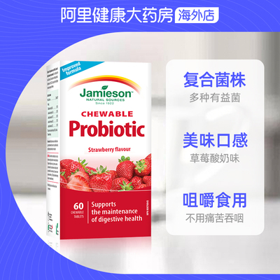 【淘金币+VIP到手更优惠】Jamieson儿童益生菌,草莓酸奶味咀嚼片,助消化神器!调理肠胃,守护宝贝健康每一天~轻松享受美味与健康的双重保障!