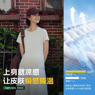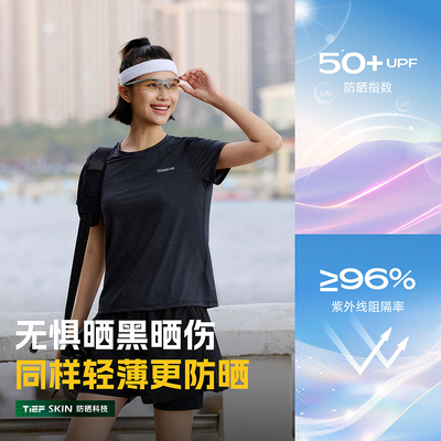 探路者防晒短袖T恤男女凉感轻薄透气UPF50+防紫外线徒步运动短袖。
