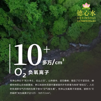 梵净山被誉为地球“绿宝石”,森林覆盖率高,水源纯净无污染。德心水取自梵净山核心水源地,把大山里的清甜装进瓶里,喝的是自然的味道