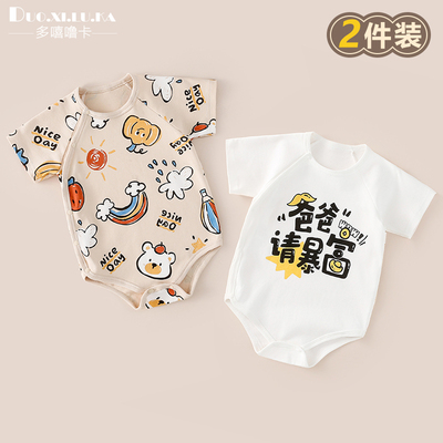 夏季必备!纯棉两件装婴儿短袖包屁衣,超薄透气,宝宝穿上就不想脱!A类面料亲肤无刺激,三角哈衣设计方便换尿布。性价比超高,多色可选,宝妈快囤货!39.9到手两件爆款颜色手慢无