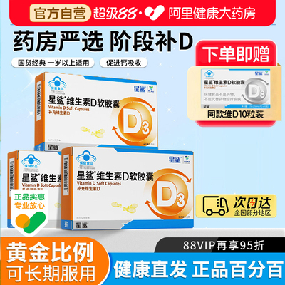 【拍6送6盒10粒装,健康惊喜直降10元,淘金币抵扣16元,88vip专享9.5折抵扣4.9元,消费券200-25元抵扣7.7元,到手价69.3元】星鲨维生素D滴剂软胶囊D3维D婴幼儿宝宝补钙儿童青少年补充VD30粒,因为维生素D是促进钙吸收的重要元素,它让我们的骨骼更加强壮,免疫力也大大提升。
