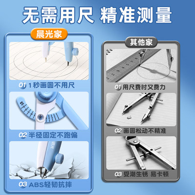 晨光数显圆规+尺规套装】专业绘图工具,带刻度设计,学生党必备!高颜值笔式造型,安全耐用,初中高中通用,学习效率翻倍!