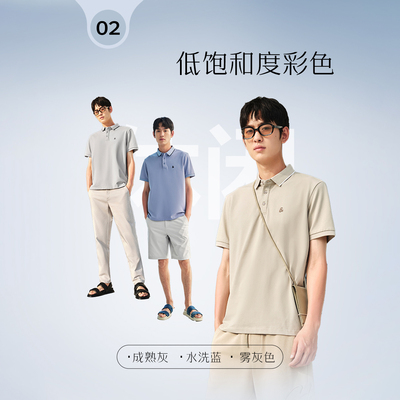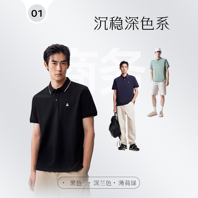 杰克琼斯男装春夏男士翻领短袖T恤商务通勤休闲纯色!! 【叠淘金币3.98!!】