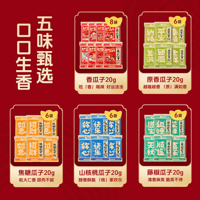 【下拉秒杀到手17.6,叠加88立减0.88+淘礼金1.54到手15.18,部分账号有3元首单礼金到手12.18!超划算整整32包!5种不同口味】过年谁家不磕点瓜子呀,今年吃点不一样的,谁见了都要夸我太会买啦洽洽大红袋瓜子大礼包640g,独立小包装方便食用,年货优选!办公室休闲零食,香脆可口,家人朋友都爱!