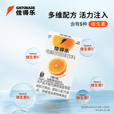 佳得乐闪电条电解质固体饮料运动补水冲剂维生素钠钾0糖0脂多盒装。