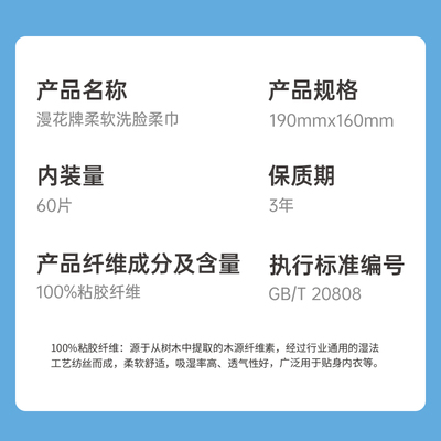 宝子们看过来!漫花洗脸巾,2包,每包60抽。厚实耐用不掉屑,干湿两用超方便,擦脸卸妆都靠谱,入手不亏~
