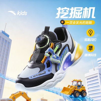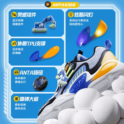 【叠首单礼金到手价更低~】安踏童鞋恐龙灯鞋,儿童男童休闲运动鞋,闪灯设计超酷炫,旋钮调节更方便,孩子爱穿家长放心!
