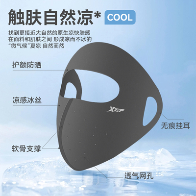 ♥特步10A抗菌冰皮脸基尼,全脸降温防晒♥3D立体大空间!不蹭妆容。无痕挂耳●触肤自然凉