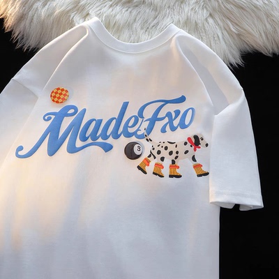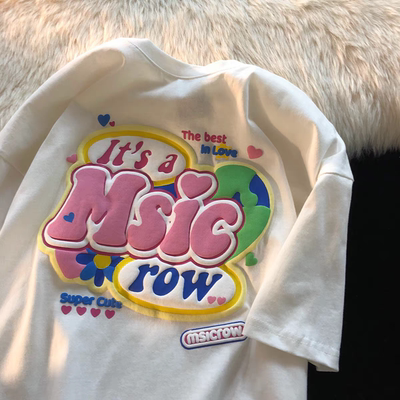 棉棉印象美式印花复古短袖t恤女宽松大码,夏季内搭打底衫棉上衣