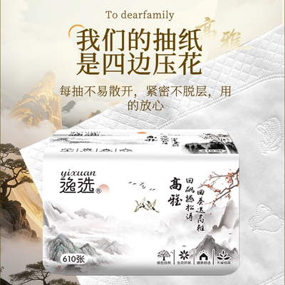 610张大包抽纸,原生木浆柔软耐用,可湿水使用,家庭实惠装!