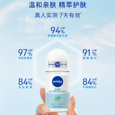 【淘金币3.18元,淘礼金1.69,福袋2元,88vip凑单到手14元】妮维雅精华爽身走珠液止汗露,72H止汗净味持久干爽,72H止汗净味持久干爽。
