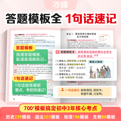 【中考必备!万唯答题模板速记】政治道法历史地理生物全科覆盖,七年级八年级九年级适用!拍2件仅需29.8元,限时秒杀最.高立减10元,学霸都在用的提分神器!