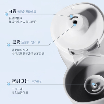 2支装基酸白泥洗面奶,双管设计更方便,温和洁净不紧绷,敏感肌也适用!植物氨基酸配方,泡沫细腻易冲洗,洗脸新体验!