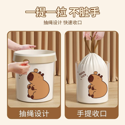 笛本免撕垃圾袋家用加厚手提式,卡皮巴拉设计萌趣实用,宿舍学生必备!加厚耐用不破漏,自动收口设计更方便!