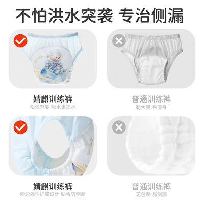 婧麒婴儿戒尿不湿训练裤,透气防漏宝宝如厕训练裤立体可水洗尿布裤