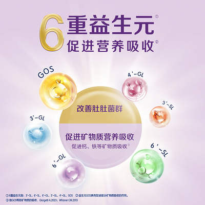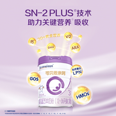6重益生元助力好吸收,3管齐下,高效吸收,纯羊乳蛋白,羊乳脂小1/2消化快1倍,粉质好细腻易溶看得见。