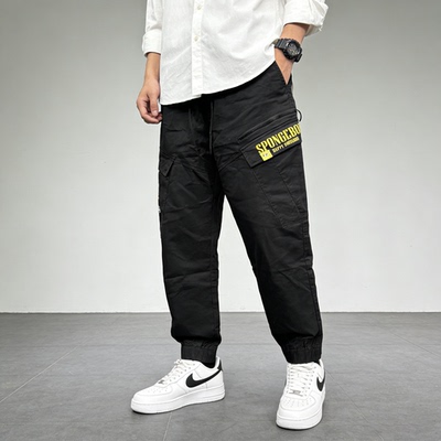 工装风黑色束脚裤,多口袋设计,字母印花潮流感十足,休闲百搭。适合日常出行或户外活动,舒适又显个性。