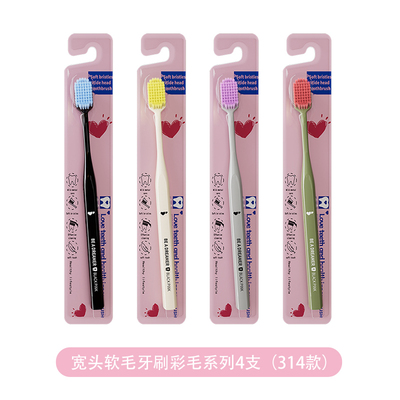 【淘金币0.39最终到手6.11左右】炫彩宽头软毛牙刷,加宽刷头清洁更彻底,护齿更贴心,学生情侣家庭必备,性价比超高!炫彩宽头软毛牙刷4支,加宽刷头清洁护齿学生情侣专用~