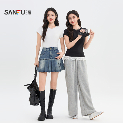 点右上角叠金币[\u1f4b0]20.9 三福夏季简约休闲短袖女!