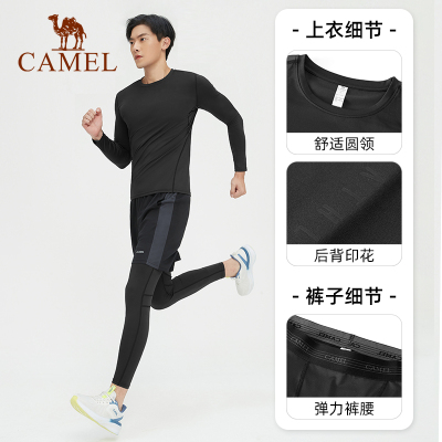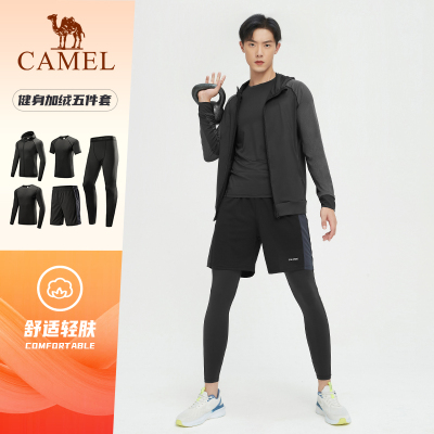 骆驼健身房长袖运动服跑步五件套男士