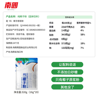 下滑详情页进入金币抵扣+消费券到手仅11.6元!南国椰子粉甄选优质老椰,粉质细腻,满满椰子香地道的海南味,超级美味呀!不添加白砂糖无任何添加剂配料简单仅椰子原浆粉,温水冲泡多种喝法,快来抢购吧!